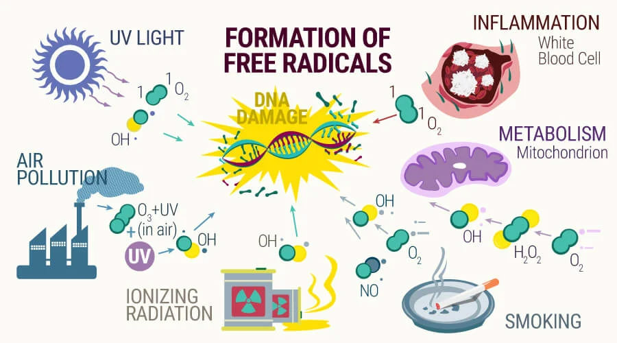 In many cases free radicals are formed and cause oxidative stress in cells. Common causes include conditions such as obesity, varicocele, various endocrine or metabolic diseases and chronic inflammation of the male genital tract, or habits such as smoking or substances of abuse.