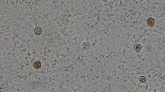 A semen sample contains spermatozoa as well as round cells. As shown in the following video some semen samples can contain a large number of round cells but by looking at the microscope there is no way to differentiate between the two cell types.